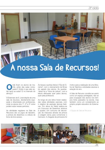 nde ficam os alunos de manhã, antes das aulas começarem? Onde é que eles estão após as aulas? E no intervalo do almoço? O Externato de S. José dispõe de uma sala de recursos, devidamente equipada e dinamizada por professoras, onde os alunos dos 1º, 2º e 3º ciclos podem estar nesses períodos. As atividades regulares na Sala de Recursos são os jogos de tabuleiro, a pintura de desenhos e a leitura de livros de livre acesso.