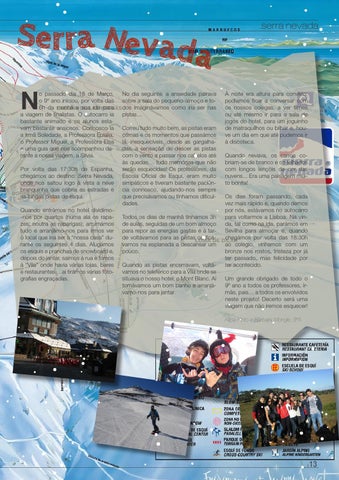 À noite era altura para convívio: podíamos ficar a conversar com os nossos colegas, a ver filmes ou até mesmo ir para a sala de jogos do hotel, para um joguinho de matraquilhos ou bilhar e, houve um dia em que até pudemos ir à discoteca. Quando nevava, os carros cobriam-se de branco e os telhados com longos lençóis da cor das nuvens... Era uma paisagem muito bonita! Os dias foram passando, cada vez mais rápido e, quando demos por nós, estávamos no autocarro para voltarmos a Lisboa. Na vinda, tal como na ida, parámos em Sevilha para almoçar e, quando chegámos por volta das 18:30h ao colégio, vínhamos com um bronze nos rostos, tristeza por já ter passado, mas felicidade por ter acontecido. Um grande obrigado de todo o 9º ano a todos os professores, irmãs, pais… a todos os envolvidos neste projeto! Decerto será uma viagem que não iremos esquecer! Filipa Pinto e Bárbara Monge, 9ºA