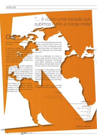 Olá! Estamos a chegar ao fim de mais um ano letivo. E cada ano escolar que vivemos é como uma escada que subimos rumo à nossa meta. Procuramos ajudar-vos a fazer esta caminhada com serenidade, paz e muita alegria sabendo, à partida, que para isso terão também de se empenhar e fazer opções que nem sempre são fáceis. Sentiram tudo isto quando realizaram os testes intermédios, os testes do PISA 2012, quando se empenharam nas campanhas de solidariedade, nos passeios, na dinamização do Prémio Infante D. Henrique, nas atividades lúdicas, desportivas e culturais – como a bonita festa de S. José. E como Teresa de Saldanha nos ensina que “Educar é formar o espírito, o coração e a inteligência” o mês de maio ajudou-nos a enriquecer a nossa caminhada na fé.
