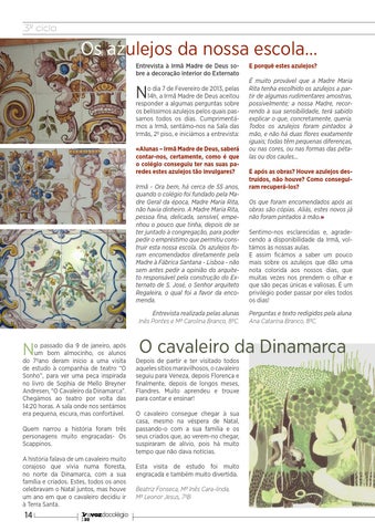 o dia 7 de Fevereiro de 2013, pelas 14h, a Irmã Madre de Deus aceitou responder a algumas perguntas sobre os belíssimos azulejos pelos quais passamos todos os dias. Cumprimentámos a Irmã, sentámo-nos na Sala das Irmãs, 2º piso, e iniciámos a entrevista: «Alunas – Irmã Madre de Deus, saberá contar-nos, certamente, como é que o colégio conseguiu ter nas suas paredes estes azulejos tão invulgares?
