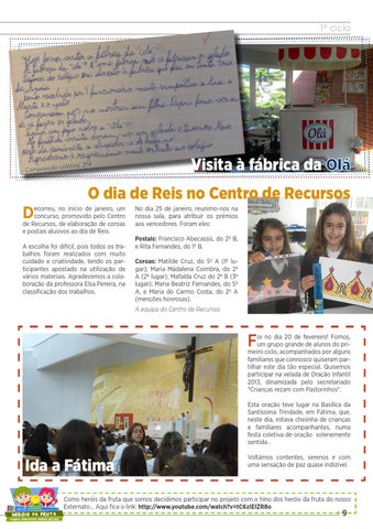 ecorreu, no início de janeiro, um concurso, promovido pelo Centro de Recursos, de elaboração de coroas e postais alusivos ao dia de Reis. A escolha foi difícil, pois todos os trabalhos foram realizados com muito cuidado e criatividade, tendo os participantes apostado na utilização de vários materiais. Agradecemos a colaboração da professora Elsa Pereira, na classificação dos trabalhos.