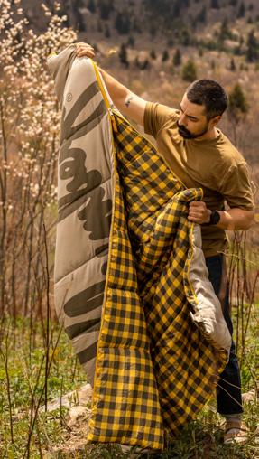 Quallofil fibers had a revolutionary, four-hole strand structure that was excellent for trapping in heat, and the expedition prototypes would be a springboard for Slumberjack’s Everest Elite line - three highperformance models named after the approaches to the Everest summit. The line used three different quilt constructions, and was the first to do triple-layer construction. What’s more, Slumberjack had invented an exclusive process known as Air Entrapment
