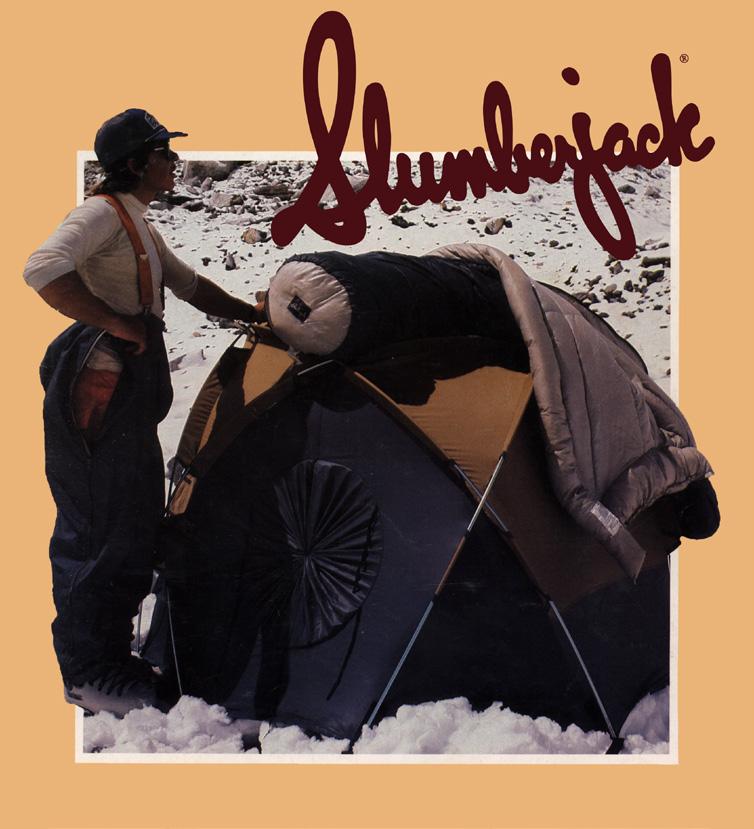 In 1981, Slumberjack hit a new height. The company was chosen by DuPont to design and construct sleeping bags filled with a new synthetic insulation called Quallofil for a team aiming to conquer the East Face of Mt. Everest. The bags were hailed as widely successful as they kept mountaineer John Roskelley and his 16-man expedition team warm at 25,000 feet and 30 degrees below zero. Roskelley would go on to say that “(They were) one of the most popular pieces of gear on the Everest expedition because of their comfort and warmth in the cold, moist environment