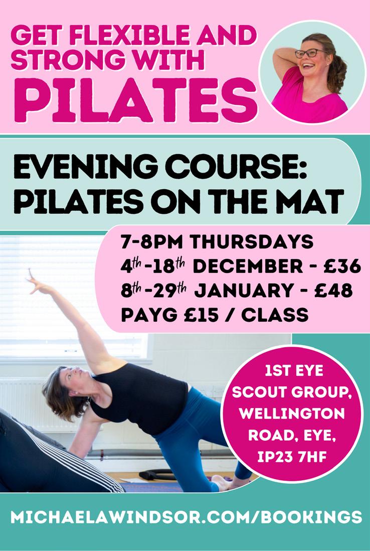 Thursdays 6pm & 7pm at 1st Eye Scout Hut. £12. Contact Michaela on info@michaelawindsor.com