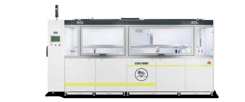 Designed for mid- and large-sized production, the new CDC 1000 produces up to 160 lenses/h. Its technical area is completely separated from cleaning & coating chambers. CDC 1000 is equipped with a smooth dipping system, providing no vibrations at all. Cleaning and coating chambers feature laminar flow and controlled air exhaust. The cleaning line includes 6 tanks, 1 primer and 2 varnishes for fast processing. CDC 1000 is characterized by a particularly high level of automation - doors, etching process, detergent, water, alcohol & primer refillings, water control. High environmental friendliness with 75% water savings rounds off the machine’s profile.
