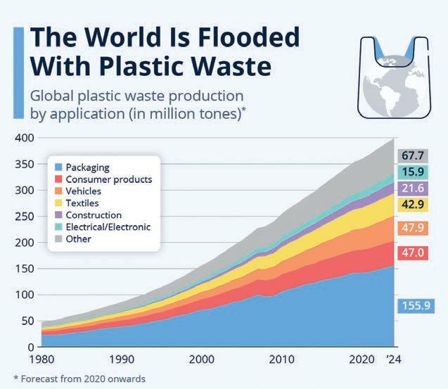 In just two decades, the global annual production of plastic waste has doubled from 180 million tons to more than 350 million tons, according to the OECD's Global Plastics Outlook report.