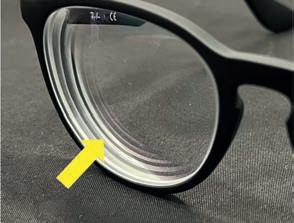 the lighting conditions, making the otherwise transparent lens visible to the observer. For some people from outside the industry who are interested in aesthetics, this makes the edge of the lens appear rough or poorly finished – in contrast to the optically perfect surface of the lens and the high surface quality of the frame.
