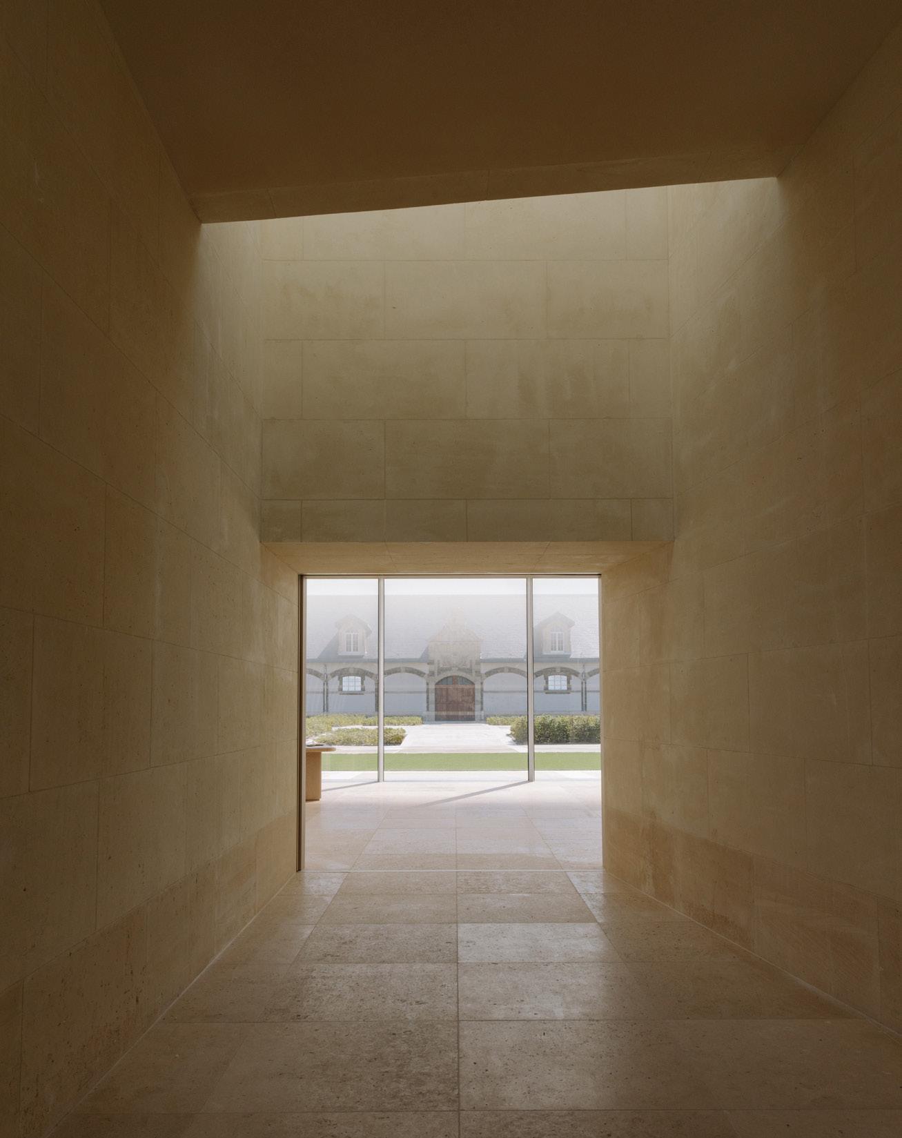 Le parcours débute à ciel ouvert, sur le chemin des Crayères : un majestueux corridor minéral imaginé par le paysagiste Christophe Gautrand. Inondé de lumière naturelle et tamisé par les ombres mouvantes des feuillages, il mène à un jardin foisonnant de biodiversité. Ce paysage vivant, ouvert au public, offre une respiration rare, comme un avant-goût de ce qui attend le visiteur au cœur du domaine.