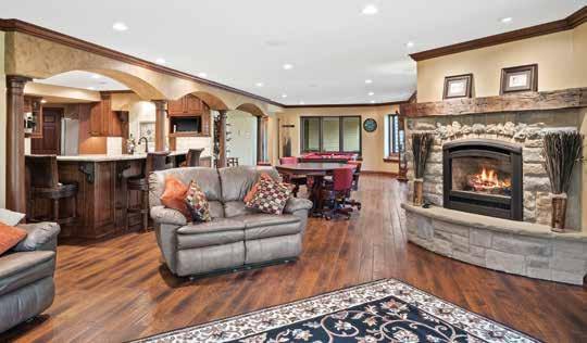 OKAUCHEE LAKE At just under 6,000-sq.-ft., this custom-built lake home features all the luxury and amenities one can imagine. Couple that with Okauchee Lake and all it has to offer. Set on a beautifully landscaped level lot the home offers 3 levels of quality living with high volume cathedral ceilings, walls of windows, polished wood floors, multiple fireplaces, beautiful cherry wood cabinetry and mill work throughout. The kitchen is simply amazing with Viking appliances. pantry and gorgeous granite counters. The luxurious master suite has a huge his & hers walk-ins’, a sitting room, spa inspired bath and a private balcony. Finished lower level walks out onto the lake and features 12-ft. ceilings, theater room, heated floors, bar room, exercise room and 5th bedroom with bath. $1,880,000