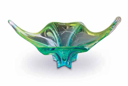 A 1970s yellow green Murano art glass center piece bowl. This unique item is on display at Riverview Antiques, located at 2045 West St. Paul Ave., Milwaukee. Open Tuesday thru Saturday, 10 am-5 pm and Sunday 11 am-4 pm. For more information call 414-278-9999, or go to www.RiverviewAntiqueMarket.com.