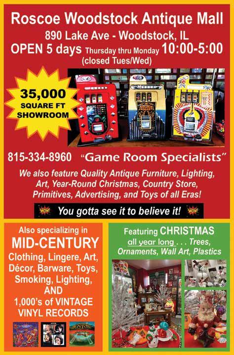 10-50% Sales in Booths, entire mall! November 25-December 31 Tues-Sat 10-5pm, Sun, 11-4pm 2045 West St. Paul Ave., Milwaukee 414-278-9999, www.RiverviewAntiqueMarket.com