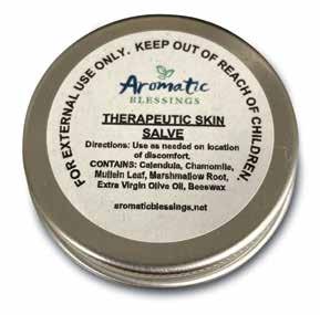 Shop owner of Aromatic Blessings and Herbalist/Aromatherapist, Susie Madunch created this Therapeutic Skin Salve. It has become a “go to” for those who suffer from inflamed or irritated skin, cracked fingers and toes, Rosacea and more! At Aromatic Blessings find custom Formulated Herbal Products, CBD products, teas, tinctures, syrups & elixirs, crystals, Incense, Smudges, Aromatherapy products and more that you would find in an Apothecary. Stop in to see what all is available to enhance your quality of life at 152 East Chestnut Street (in the Historic Loop) Burlington, WI Call 414-379-1927 or check www.aromaticblessings.net or facebook for more information.