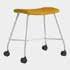 Stool in two heights, with castors for smooth transportation. The curved, upholstered seat makes the stool comfortable. The design allows for different ways of sitting.