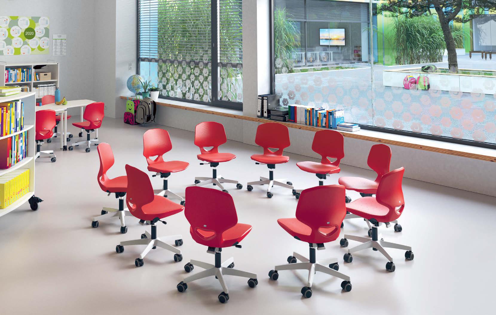 A modern school day is structured by many different rhythms. Classwork often alternates between individual learning, group sessions and quiet relaxation periods. To make this variety of scenarios possible, spatial layout must be quickly and easily achieved. For example, arranging a large circle of chairs for a teacher-centred presentation, then quickly rearranging for concentrated, individual work – all within the same lesson period.
