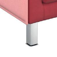 Corner elements are also available as basic elements for the free design of Lounge areas. They are suppled with low backrests (LowBack) and are available with two alternative seating heights. The overview indicates all the available elements together with the position of the associated backrest. There are two basic variants: Upholstered elements with continuous backrest and chaise longue elements with shortened backrest. Three types of foor glide element are available.