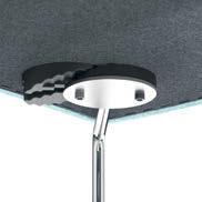 Für die Ausgestaltung von freien Sitzlandschaften gibt es auch Winkelund Bogenelemente Serie Lounge, jeweils in zwei alternativen Sitzhöhen. Diese 60° bzw. 90° Bogen und 90° Winkel sind ohne Sitzlehne (NoBack), mit niedriger (LowBack) oder hoher Lehne (HiBack) verfügbar. Mit HiBack-Winkelelementen ist auch eine Vis-à-vis-Aufstellung realisierbar für abgeschirmtes Arbeiten im Team. Ein in diese Konfguration integriertes Technikpanel sorgt für bequeme und elegante Einbindung von Leuchte, Display und Verkabelung.