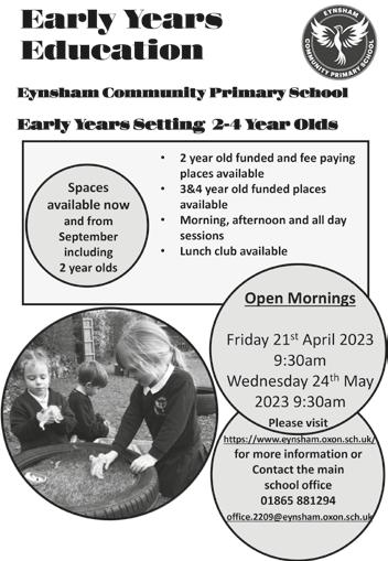 Details of all events were correct at the time of going to press but may change. Please check with the organisers’ social media before going. Send your events news for our April edition (about 70 words long) to editor@eynshamnews.org.uk before Sunday 7 May