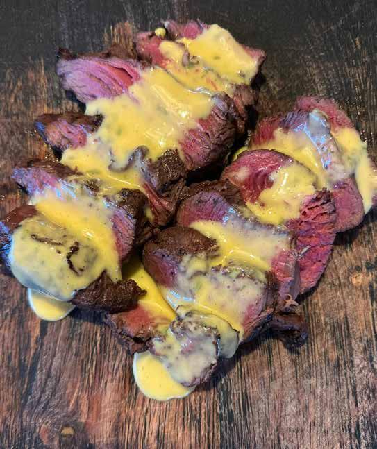 Byrja á því að taka út smjör og egg, æskilegt að ná stofuhita. Aðskilja eggjarauður og eggjahvítur. Því næst bræðum við smjör og nautakraft saman, láta það kólna í 30mín. Yfirleitt hef ég handþeytt sósuna í vatnsbaði, þá með skál eða pott ofan í vatnsbaði á litlum hita. Byrjum á því að handþeyta eggjarauður þar til þær verða ljósar. Held áfram að þeyta og læt litla bunu af smjöri út í, þeyti í 15mín þegar allt smjörið er komið. Síðan enda ég á að blanda restinni af uppskriftinni saman við og þeyti í nokkra sekúndur.