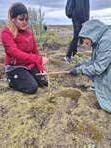 Veður var gott þegar var farið á sandinn, hiti um 10 gráður, hæg gjóla og skýjað. Við byrjum alltaf á því að fara í reit 3 og þar er farið yfir það hvernig er best að framkvæma athuganir og mælingar. Þaðan fara svo hóparnir til að skoða aðra reiti en í heild eru reitirnir fimm sem eru vaktaðir. Að auki er sérstaklega fylgst með tveimur trjám utan reita og eru þau bæði vel yfir þrjá metra og eru smám saman að hækka.