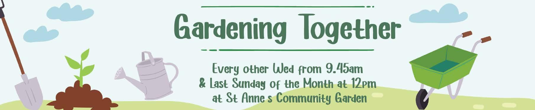 GARDENING TOGETHER at St Anne's Community Garden from 9.45am fortnightly.