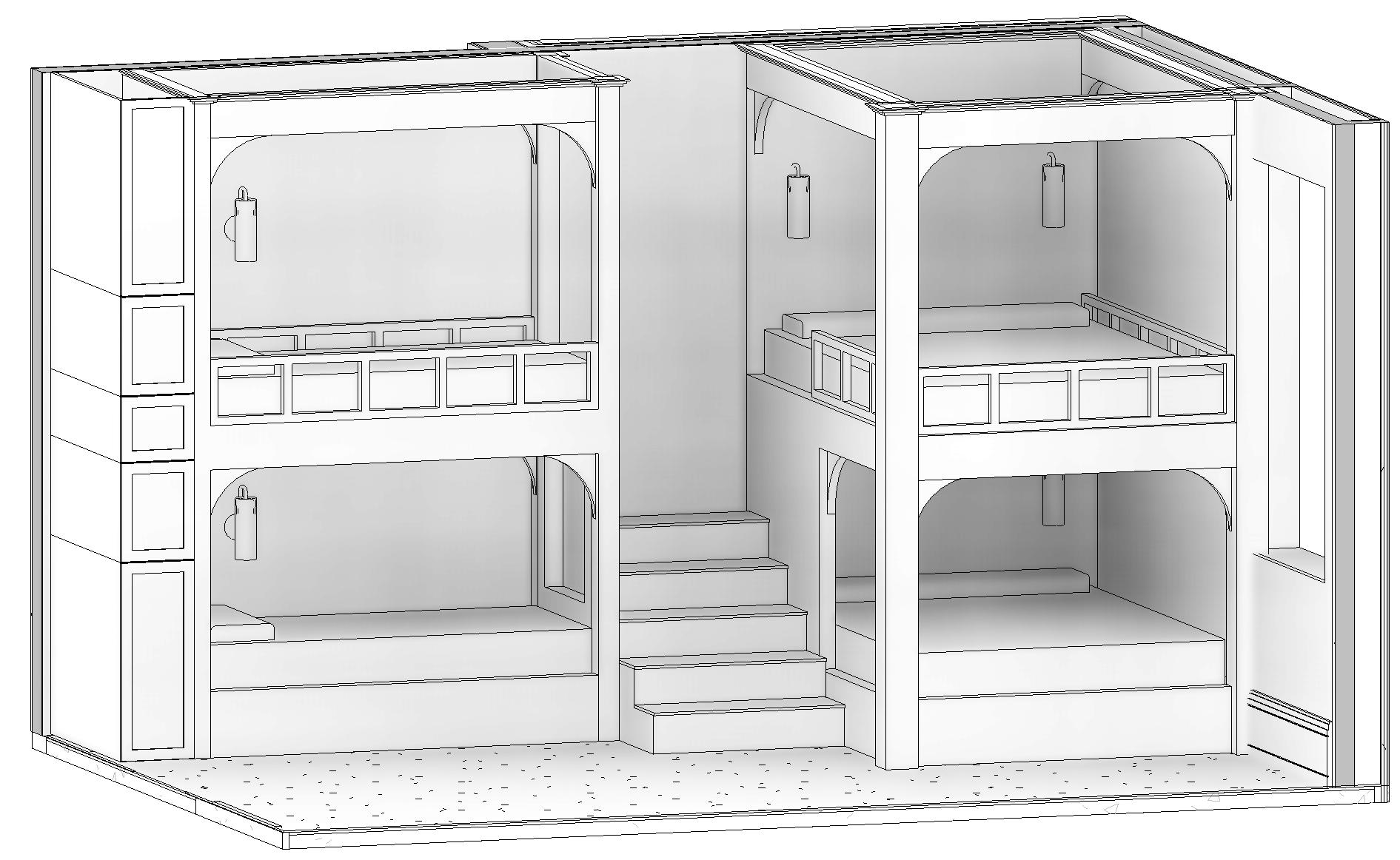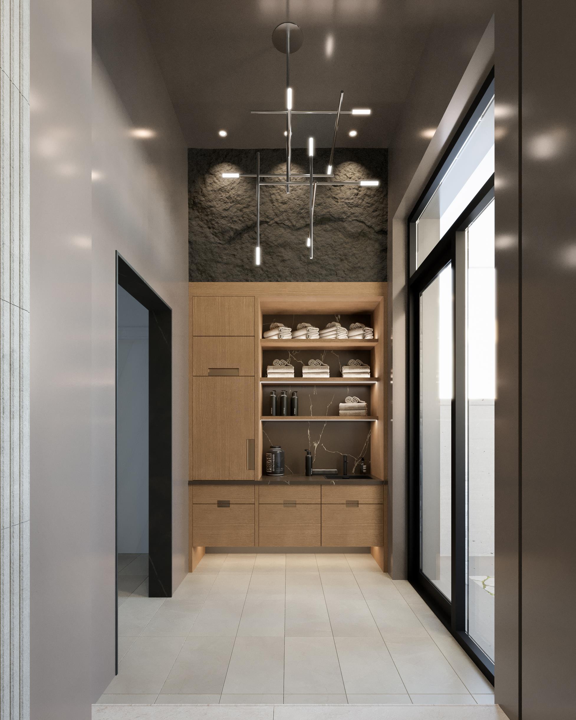 Hardwood Ceiling Cabinetry Countertop + Bench