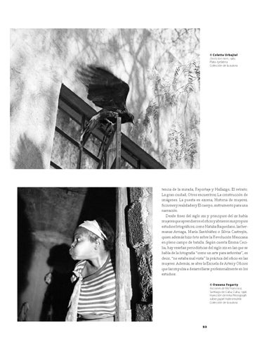 tencia de la mirada; Reportaje y Hallazgo; El retrato; La gran ciudad; Otros encuentros; La construcción de imágenes. La puesta en escena; Historia de mujeres, ficciones y realidades y El cuerpo, instrumento para una narración. Desde fines del siglo xix y principios del xx había mujeres que aprendieron el oficio y abrieron sus propios estudios fotográficos, como Natalia Baquedano, las her manas Arriaga, María Santibáñez o Silvia Castrejón, quien además hizo foto sobre la Revolución Mexicana en pleno campo de batalla. Según cuenta Emma Cecilia, hay reseñas periodísticas del siglo xix en las que se habla de la fotografía “como un arte para señoritas”, es decir, “no estaba mal vista” la práctica del oficio en las mujeres. Además, se abre la Escuela de Artes y Oficios que las impulsa a desarrollarse profesionalmente en los estudios. © Oweena Fogarty Acciones de Ma’Francisca, Santiago de Cuba, Cuba, 1998. Inyección de tinta Piezograph sobre papel Hahnemühle Colección de la autora