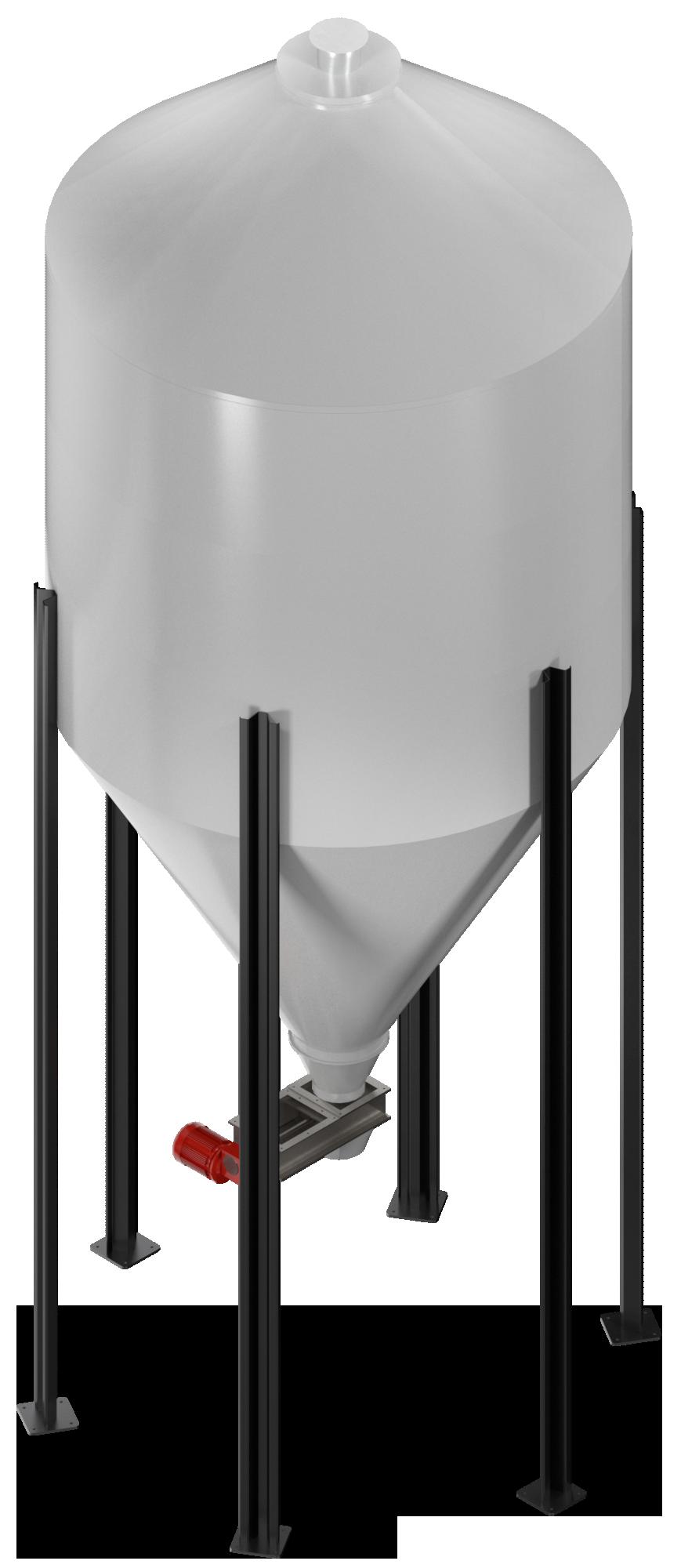 The raw material unloading is carried out using an operational hopper with a rotating discharge system to prevent material blockages and avoid clumping.