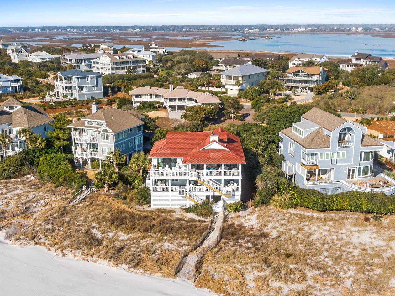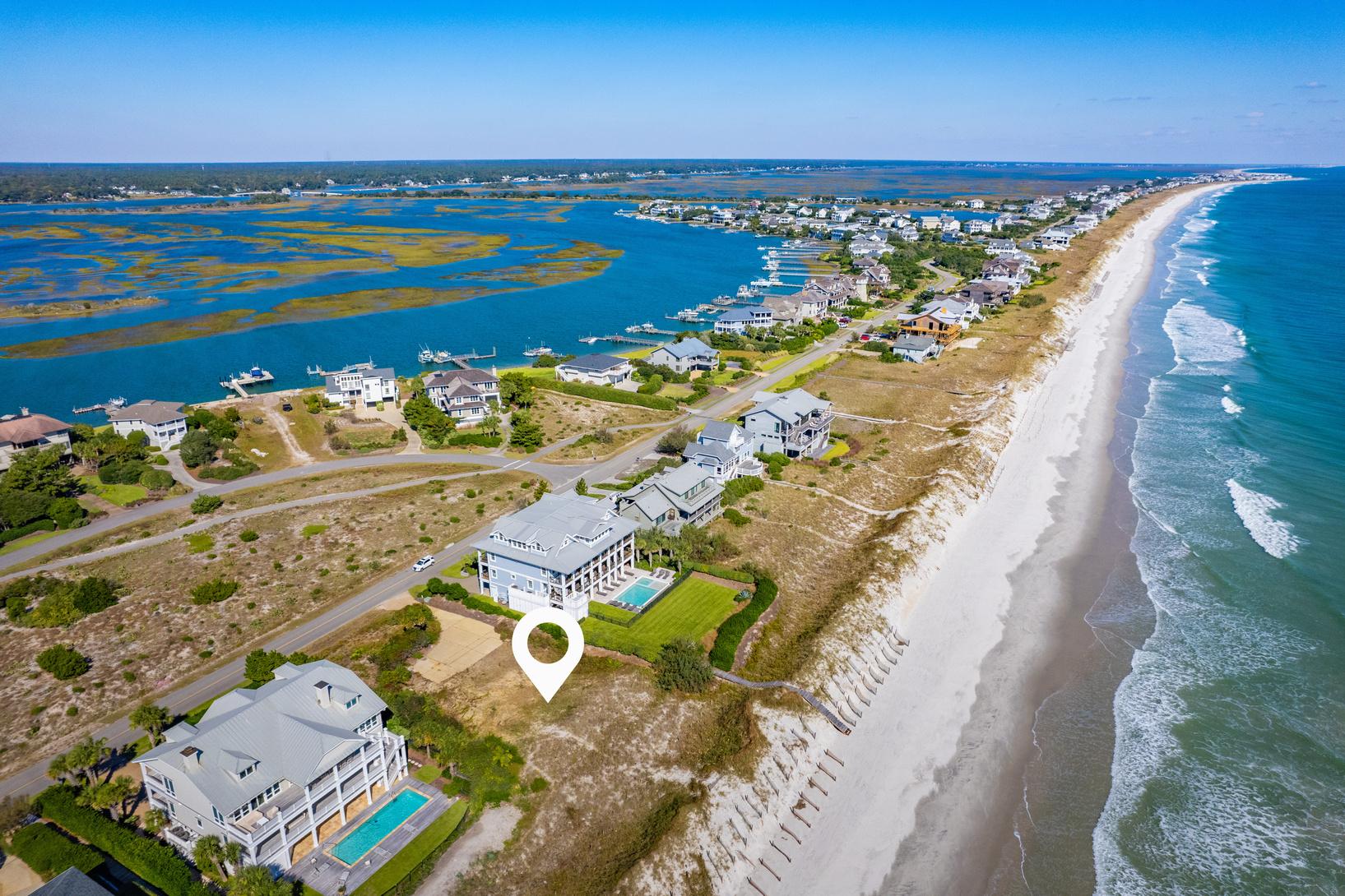 Views, Views, and more Views!! Located on exclusive Figure Eight Island, a private beach front community This ocean front home features 5 bedrooms, 4 1/2 baths and direct access to the beach. First living level offers 3 ocean front guest suites and bonus room that could serve as a home office, gym, TV den or 5th bedroom. Also on this level you have a half bath, laundry area and beverage station. The main level features an expansive great room perfect for entertaining and master suite Walls of glass provide sweeping 180 degree views of the ocean landscape from this level Uniquely designed kitchen, wet bar and dining area provides the perfect flow and function whether entertaining a large or more intimate group. Additional features include, covered and open decks overlooking the ocean, outdoor covered dining area, 2 outside showers, storage area, double car garage and large drive for additional parking. Tucked off the main road on a quiet cul-de-sac street, this home offers the privacy and entertaining spaces one would expect Sold furnished with short list of exclusions Figure Eight Island Yacht Club Warrant included