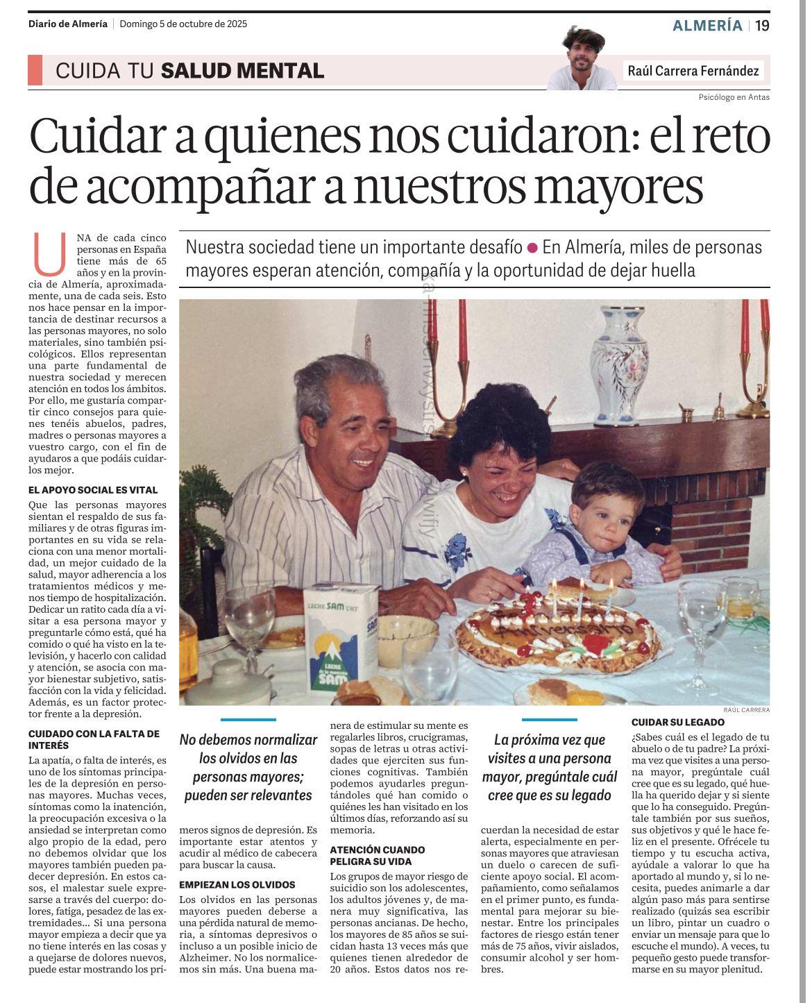 afecciones más comunes hoy en día, y el jueves en la depresión, profundizando en sus causas y estrategias para afrontarla. Y como colofón a esta semana de sensibilización, el viernes 10 se celebrará una caminata por la Salud Mental con salida simultánea a las 09.30 h desde el Pabellón José Cano (La Gangosa) y desde la explanada del Ayuntamiento (Puebla de Vícar). Después, ambos