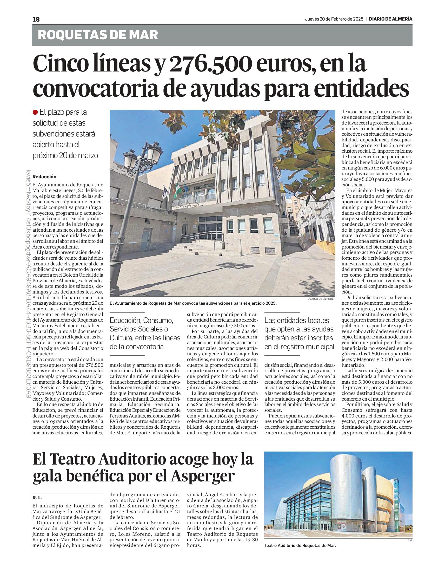 la provincia, constará de dos centros. El primero de ellos, un residencial para adultos con discapacidad intelectual con 43 plazas, ha recibido una subvención de 3 millones de euros del Ministerio de Derechos Sociales, Consumo y Agenda 2030 procedentes de los fondos Next-Generation. Esta ayuda cubrirá el 80%