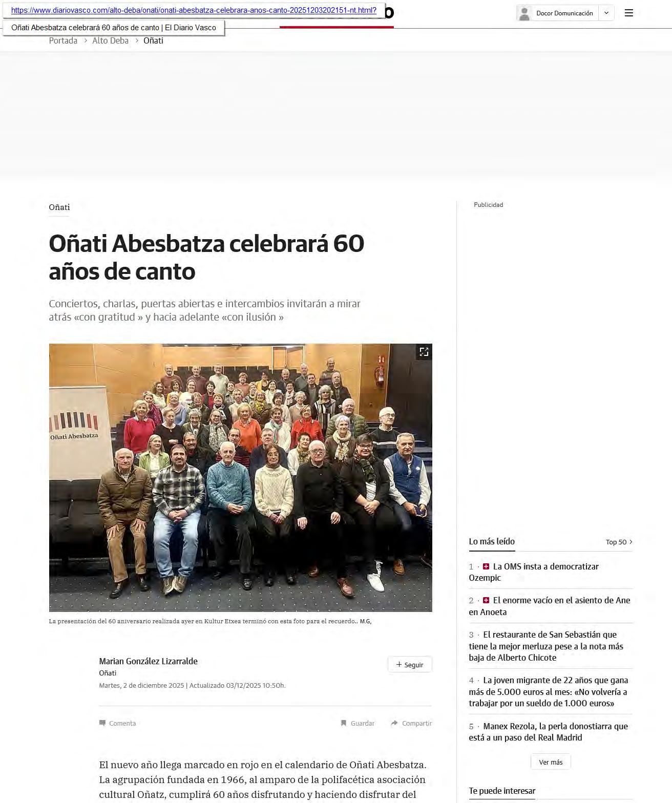 SAN SEBASTIÁN 1 Dic. (EUROPA PRESS) -
