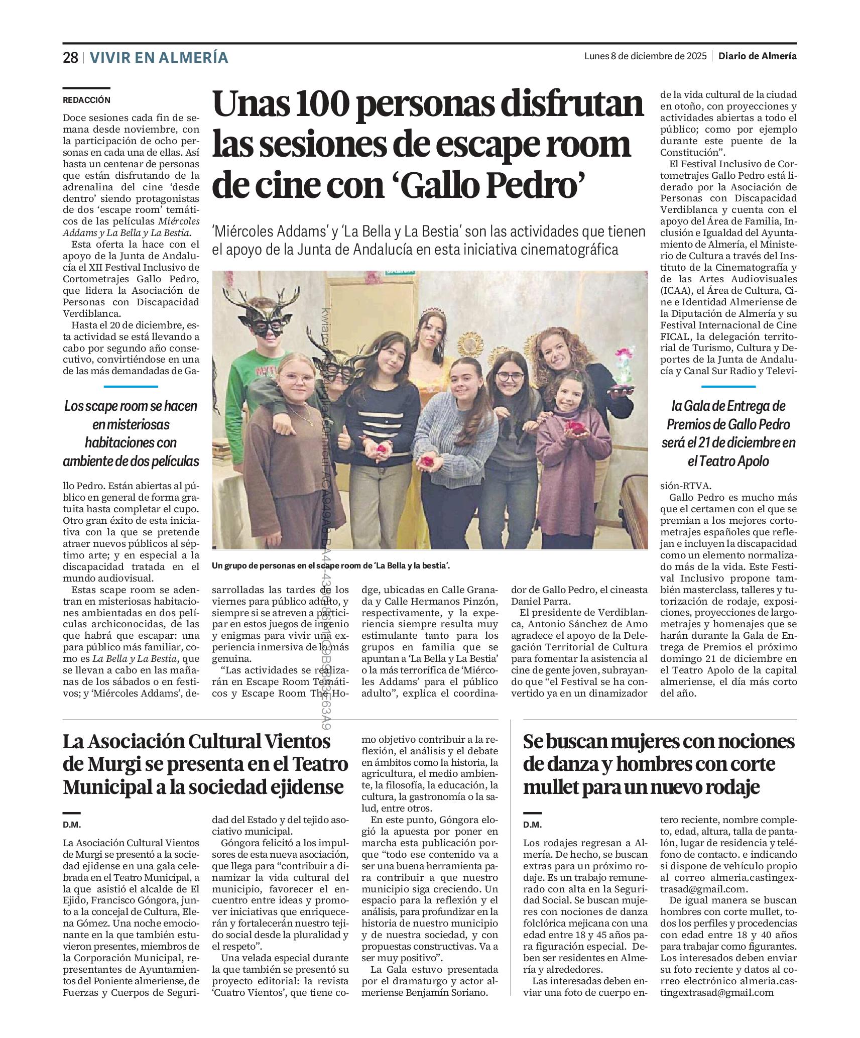 Esta oferta la hace con el apoyo de la Junta de Andalucía el XII Festival Inclusivo de Cortometrajes Gallo Pedro, que lidera la Asociación de Personas con Discapacidad Verdiblanca.