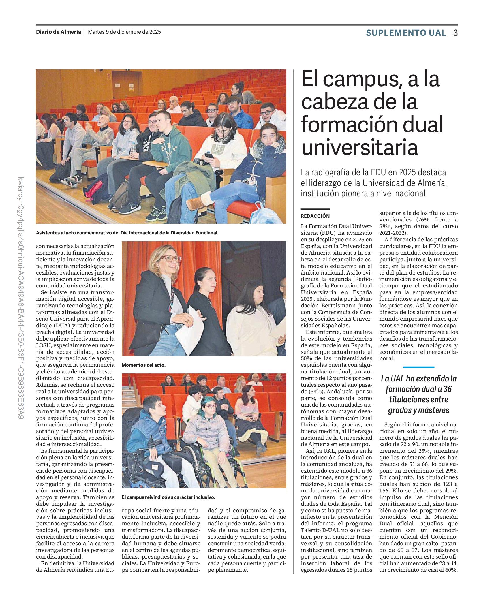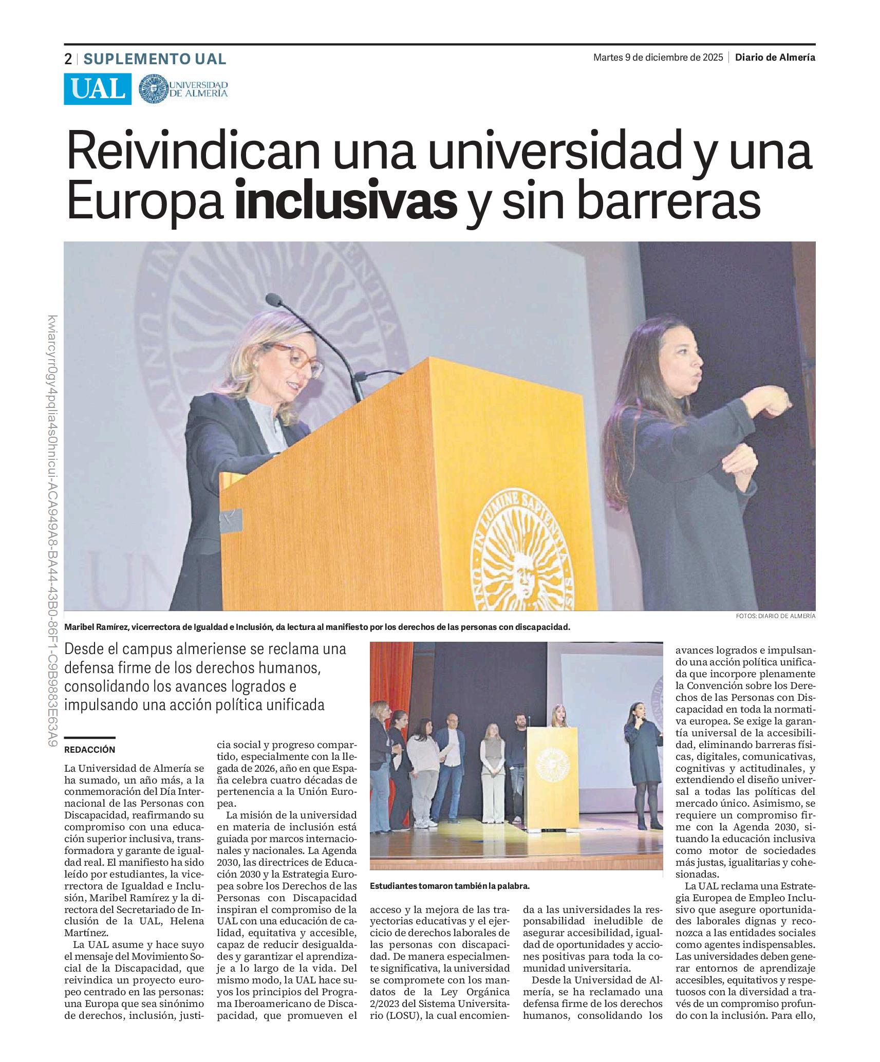 rior de Ingeniería ha destacado a Jesús Camacho y el Centro de Postgrado y Formación Continua lo ha hecho con Miguel Frasquet Unidos en la foto final, han sido la imagen del talento y del esfuerzo que este 2025 inspira al alumnado actual. El acto estuvo presidido por el rector, José J. Céspedes, junto a la vicerrectora de Estudiantes, Encarna Carmona, y la presidenta del Consejo Social de la UAL, María Dolores Hidalgo.