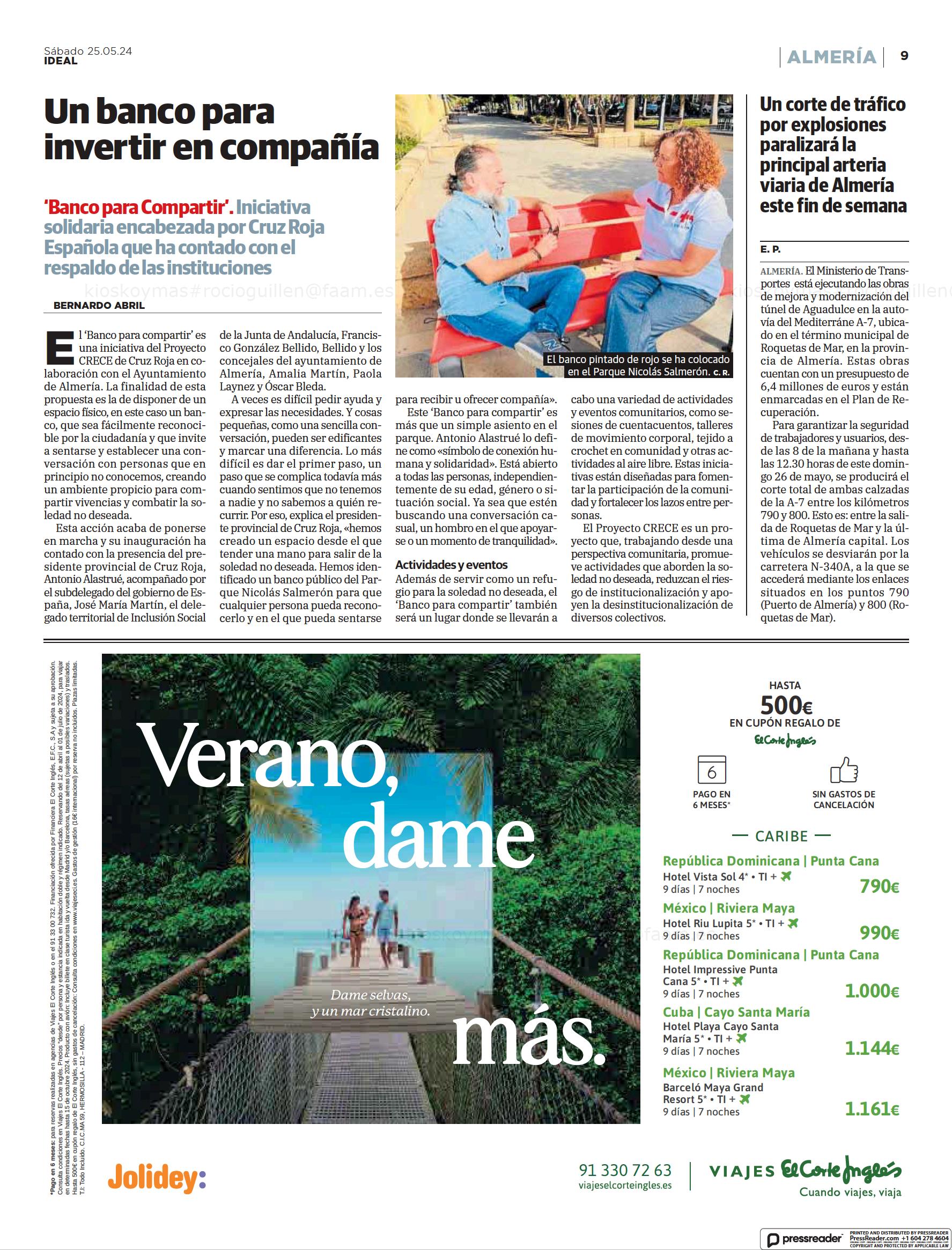 to con respecto al resto de la sociedad. Es por ello que Cruz Roja, con su Proyecto CRECE, acaba de poner en marcha una iniciativa bajo el nombre ‘Banco para compartir’ que ofrece un espacio sico que invita a dos personas desconocidas a sentarse y