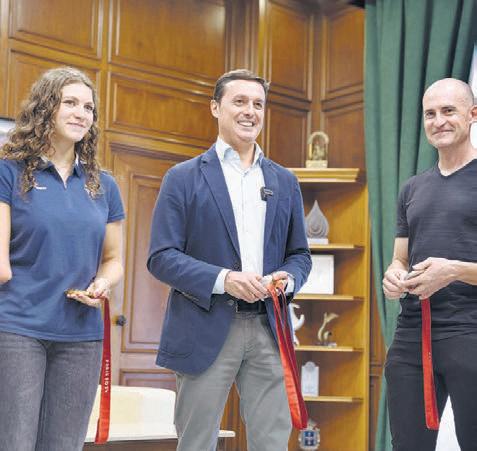Anastasiya Dmytriv, a la que llaman Tasy, dio las gracias al presidente por sus palabras y extendió ese agradecimiento a todas las personas que le han acompañado en todo este proceso hasta conseguir el éxito más importante de su recién iniciada carrera. Por su parte, el ciclista Pablo Jaramillo también agradeció a Diputación este reconocimiento y señaló que “ha sido un orgullo que el presidente de Diputación nos haya trasladado su apoyo y calor”. Tras los agradecimientos, prometió que seguirían “posicionando a Almería en el status que se merece”.