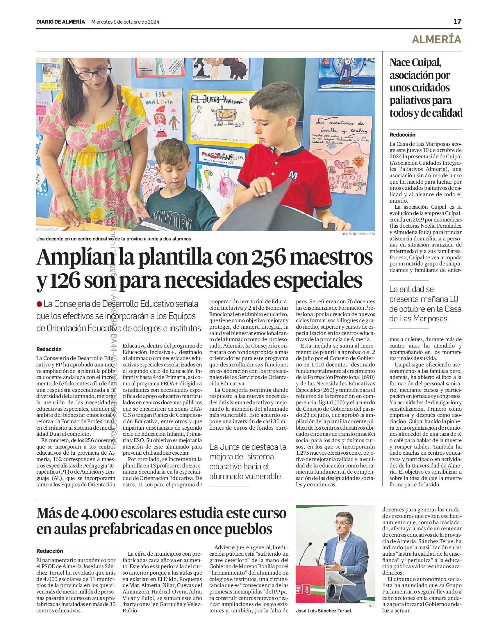 En Almería, se beneficiarán un total de 9 centros, cada uno con 7.680 sesiones anuales establecidas.