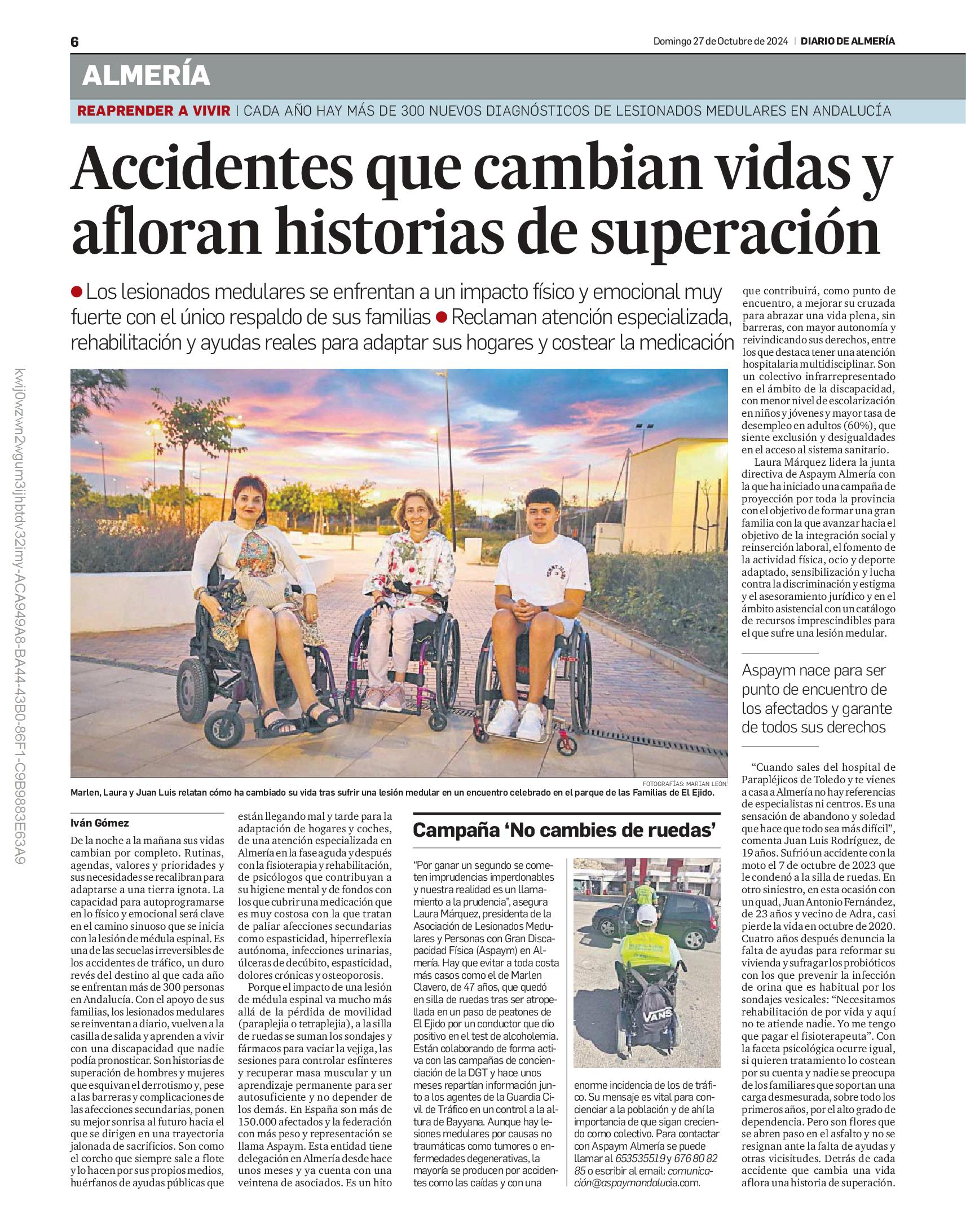 ALMERÍA.- Con motivo del Día Nacional del Daño Cerebral Adquirido, conmemorado cada 26 de octubre, la Asociación Almeriense de Daño Cerebral, VIVIR, entidad miembro de FAAM, Federación Almeriense de Asociaciones de Personas con Discapacidad, ha llevado a cabo la lectura de un mani1esto. Un texto al que ha puesto voz una afectada y a través del cual VIVIR ha reclamado una vez más la necesidad de que la administración autonómica concierte las 20 plazas que tiene acreditadas desde el año 2018. “Somos un centro referente, pero vivimos una situación insostenible ya que es mucha la demanda de familias y afectados que necesitan de manera inminente la atención especializada que nosotros ofrecemos, pero que no pueden pagar una plaza privada, cuyo coste asciende a 1.700 euros al mes”, ha explicado Loli Olivencia, directora del centro de día especializado en la atención a las personas con daño cerebral adquirido.