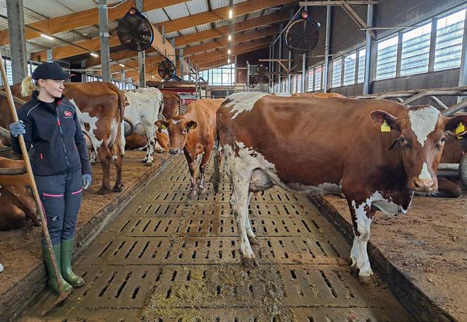 Hämeenlinnan Lammilta kotoisin olevan Annan tie jalostusasiantuntijaksi sai kipinän jo lapsuudessa, kun kotitilalla käynyt jalostusasiantuntija Lea Järvinen teki vaikutuksen työllään ja innostuksellaan. ”Lea vaikutti todella viihtyvän työssään ja mietin, että tuossa voisi olla varteenotettava vaihtoehto ammatiksi,” Anna kertoo. Suunta piti – lukion jälkeen hän haki opiskelemaan kotieläintiedettä Helsingin yliopistoon Viikin kampukselle ja päätyi jo opiskeluaikana sijaisuuden kautta nykyiselle uralleen. Annalle jalostusasiantuntijan työ on monipuolinen kokonaisuus: siihen kuuluu tilakäyntejä, jalostussuunnitelmia, rakennearvosteluja, annostilauksia, eläinkauppaa ja SimHerd-laskelmia. Lisäksi hän toimii Keski-Suomen maitotilayhdistyksen sihteerinä ja hoitaa myös sonnisoittoja VikingGeneticsin puolesta. ”Eläinkauppa on ollut tänä vuonna poikkeuksellisen vilkasta,” hän mainitsee.