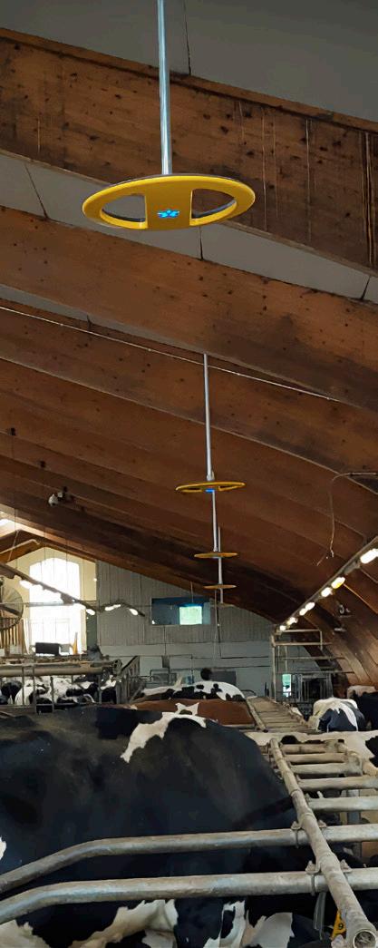 Keltaiset paikannusantennit näkyvät navetan katossa.