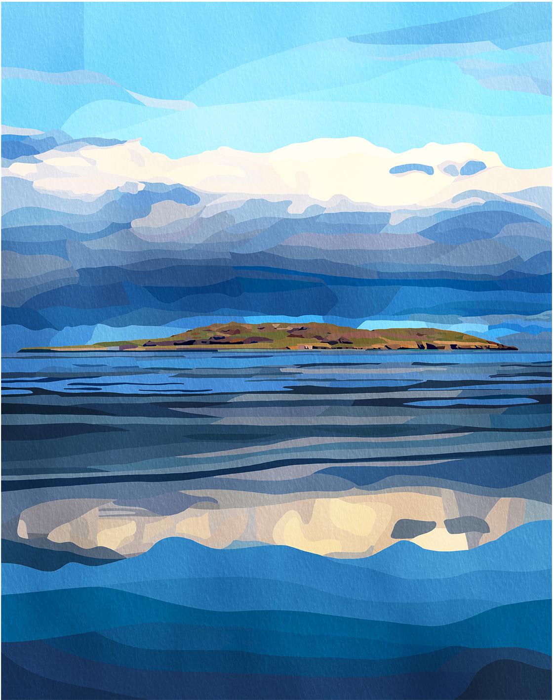 “Killarney National Park is a rich and beautiful corner of Ireland. It boasts three wonderful lakes and these inspired this painting. They remind us to reflect and remember that today is a new day.”