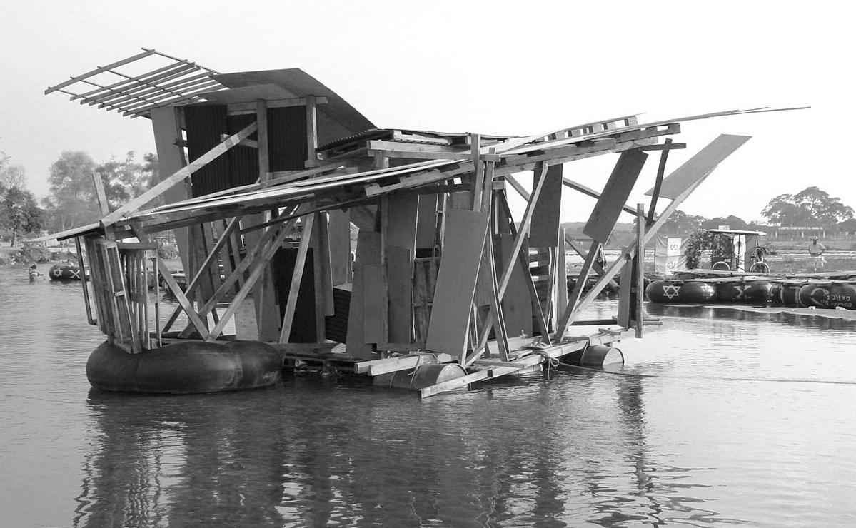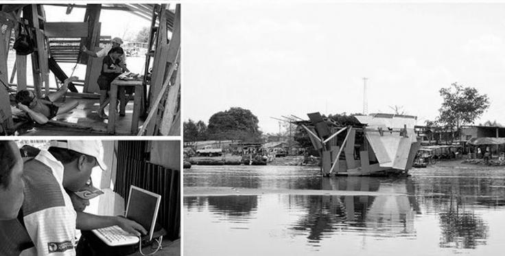 Guatemex - proposto pelos artistas Eder Castillo e René Hayashi e arquiteto Antonio O’Connell para o projeto “Frontera: Esbozo para la creación de una sociedad del futuro” do coletivo Laboratorio Curatorial 060 que teve apoio de instituições governamentais - era um barcoilha, na fronteira entre o México e a Guatemala, onde os migrantes podiam acessar informações úteis ou se comunicar com familiares.