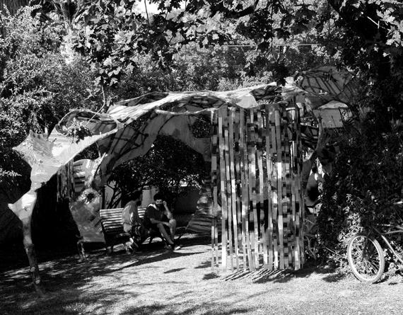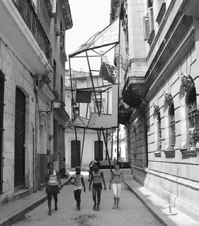 No hay tal lugar - proposta colaborativa da artista Ángela Ramírez com arquitetos chilenos e cubanos* e estudantes de arquitetura da Universidade de Havana** no contexto da 11a Bienal de Havana - era uma instalação transitória inspirada nas barbacoas cubanas - assentamentos informais ocultos dentro das casas coloniais.