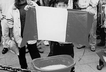 Lava la bandera - proposto pelo Colectivo Sociedad Civil (CSC)promoveu uma mobilização em direção à cidadania e contra a ditadura Fujimori-Montesinos. Foi uma ação ritual participativa que utilizava elementos cotidianos: água, sabão (marca Bolívar) e bacias comuns de plástico (de cor vermelha) colocados sobre bancos de madeira rústica. A população se apropriou da ação e a repetiu todas as sextas-feiras, de maio a novembro, em Lima e em outras 27 cidades do país e do exterior.