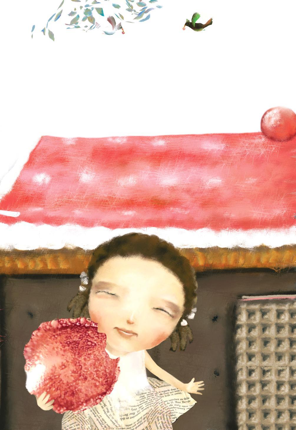 Hansel extendió la mano y quebró un trocito del techo y Gretel, acercándose a los cristales, dio un mordisco. Entonces, se oyó una débil voz desde el interior: