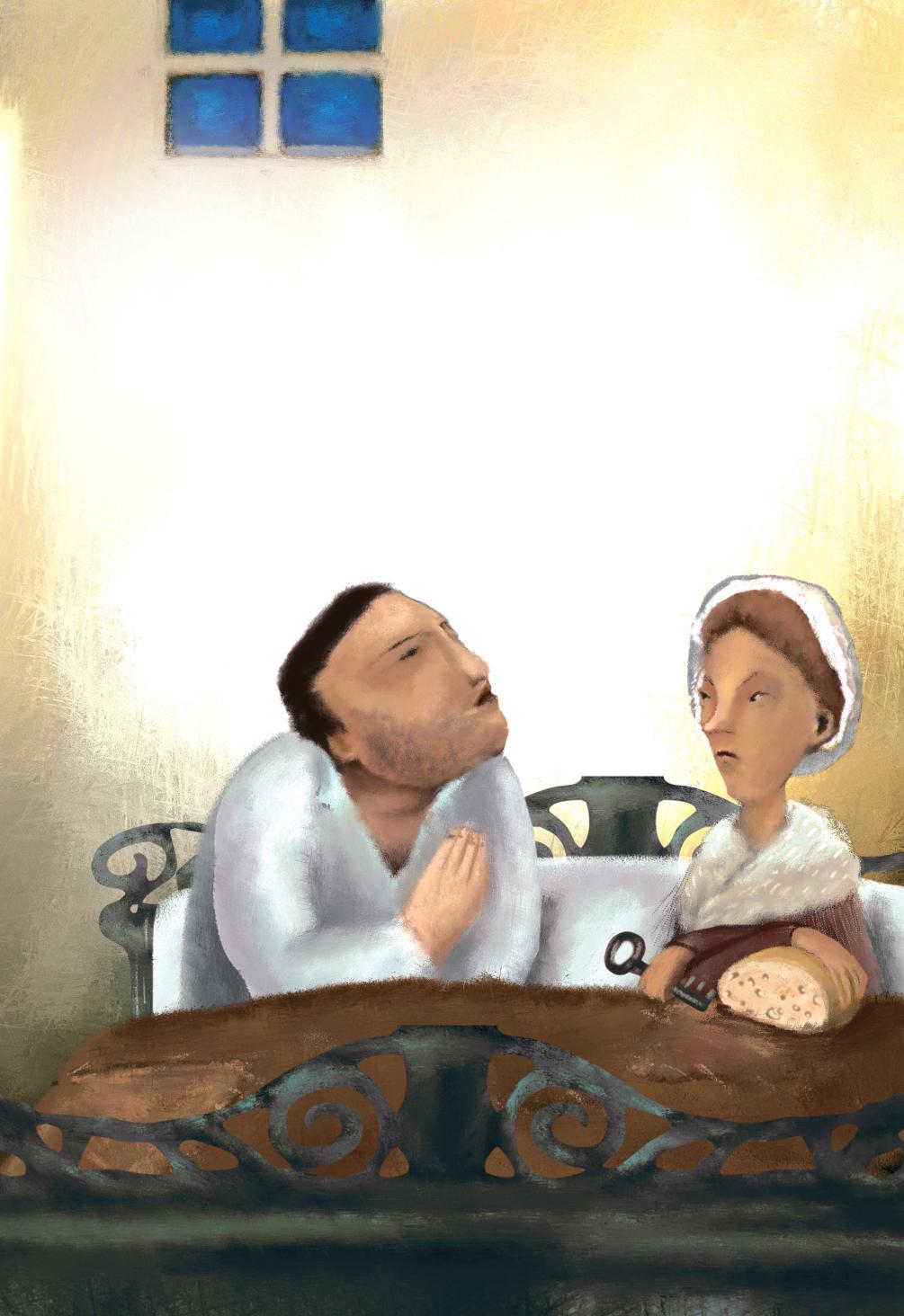 Al hombre se le contrajo el corazón y pensó: “Mejor sería repartir el último bocado con tus hijos.” Pero la mujer no quiso oír ninguna de sus razones. Por el contrario, riñéndole y haciéndole reproches, le dijo que debía ser consecuente y que, puesto que había cedido la primera vez, tenía que ceder la segunda.