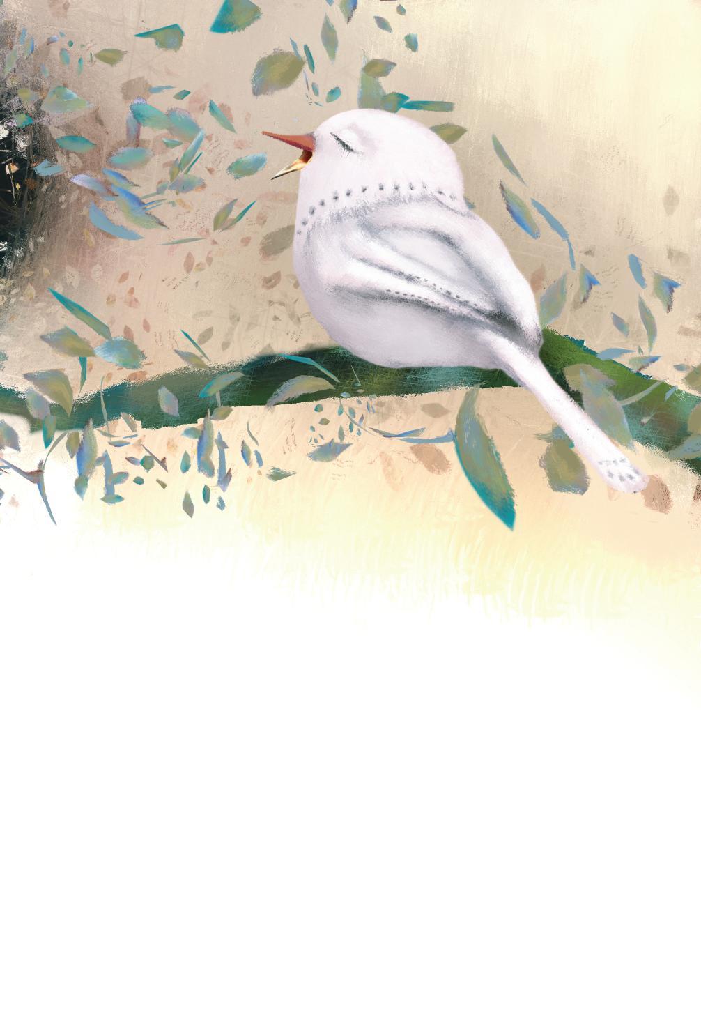 Hacia el mediodía, vieron un hermoso pajarito, blanco como la nieve, posado en una rama. Cantaba tan melodiosamente que se pararon a escucharlo.