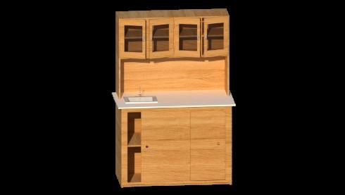 Erdkinder Lab Cabinet (48” W x 6” H x 24” D) With small sink, laminated, cabinets with acrylic windows and interior shelves