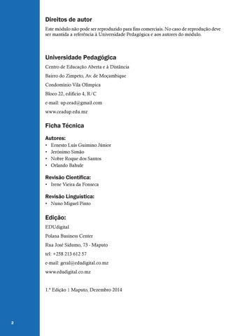 Edição: EDUdigital Polana Business Center Rua José Sidumo, 73 - Maputo tel: +258 213 612 57 e-mail: geral@edudigital.co.mz www.edudigital.co.mz