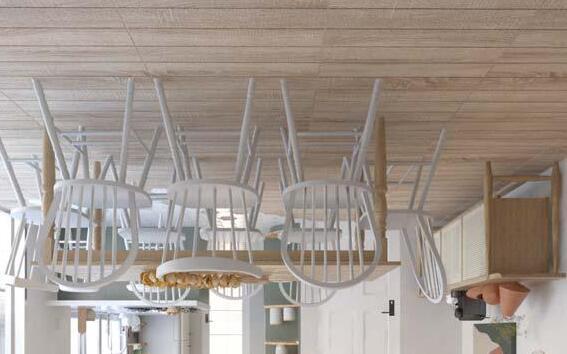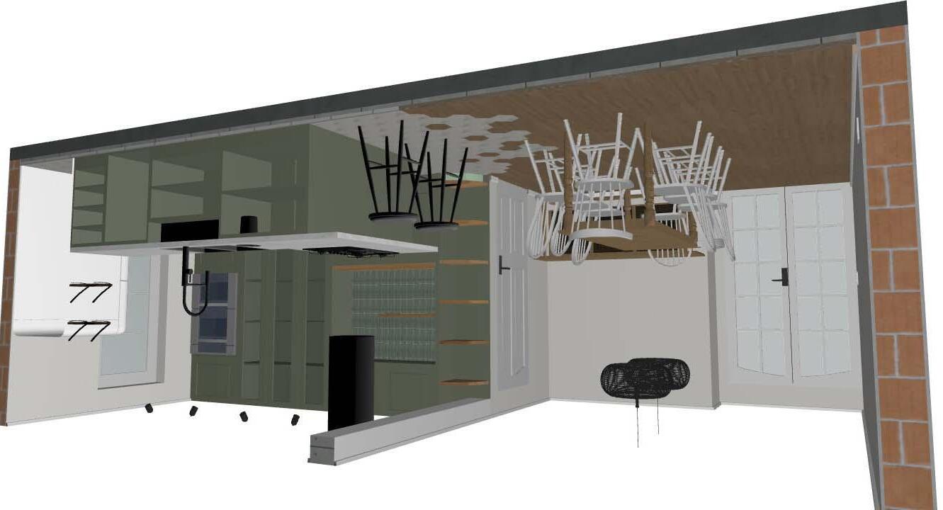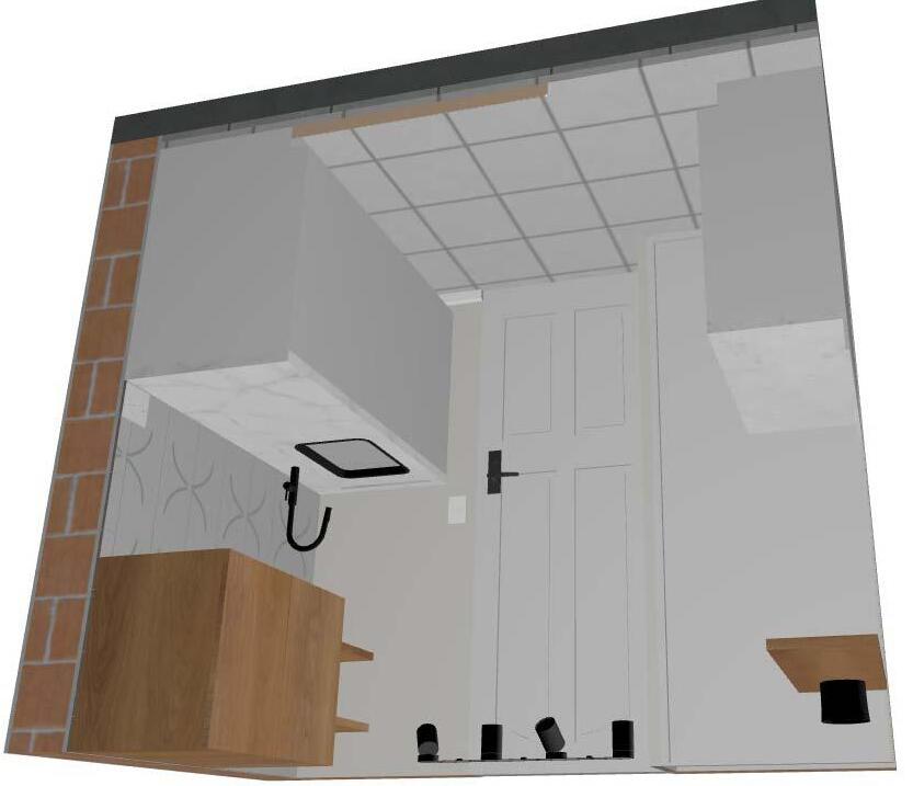 Reorganização dos equipamentos do espaço. Acréscimo de espaço para tanque de serviço e bancada.