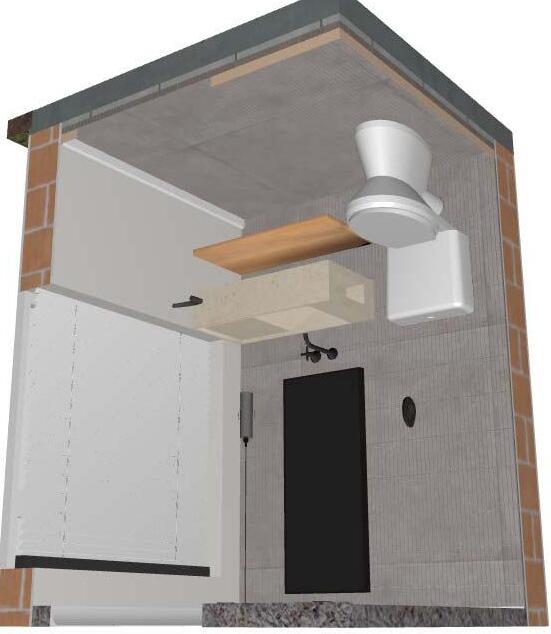 Inversão no sentido de giro da porta. Instalação de prateleiras no espaço da lareira.